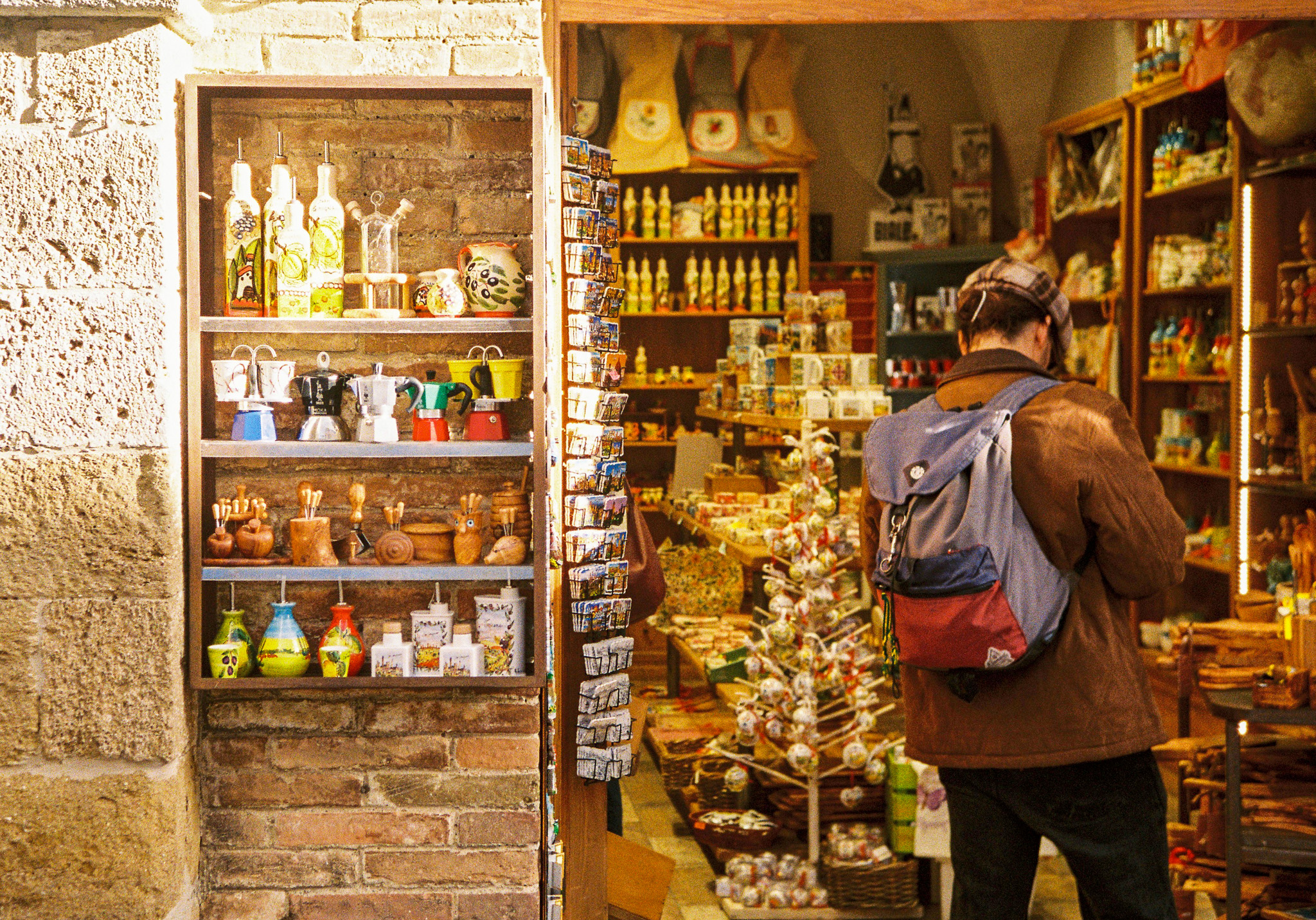 サンジミニャーノは思った以上に観光地化しており、入ってすぐにお土産屋さんが並ぶ。